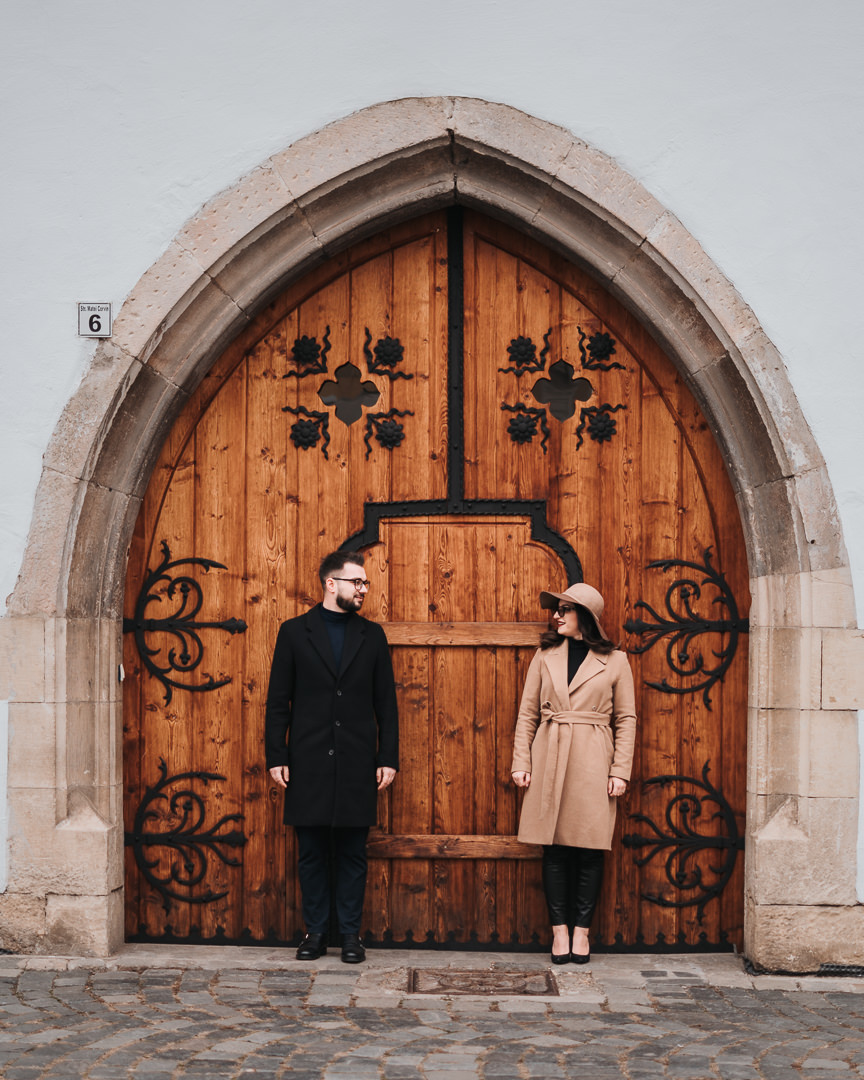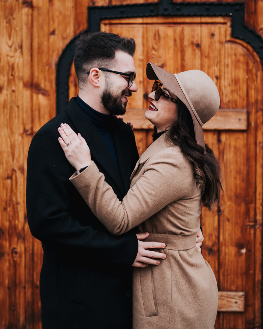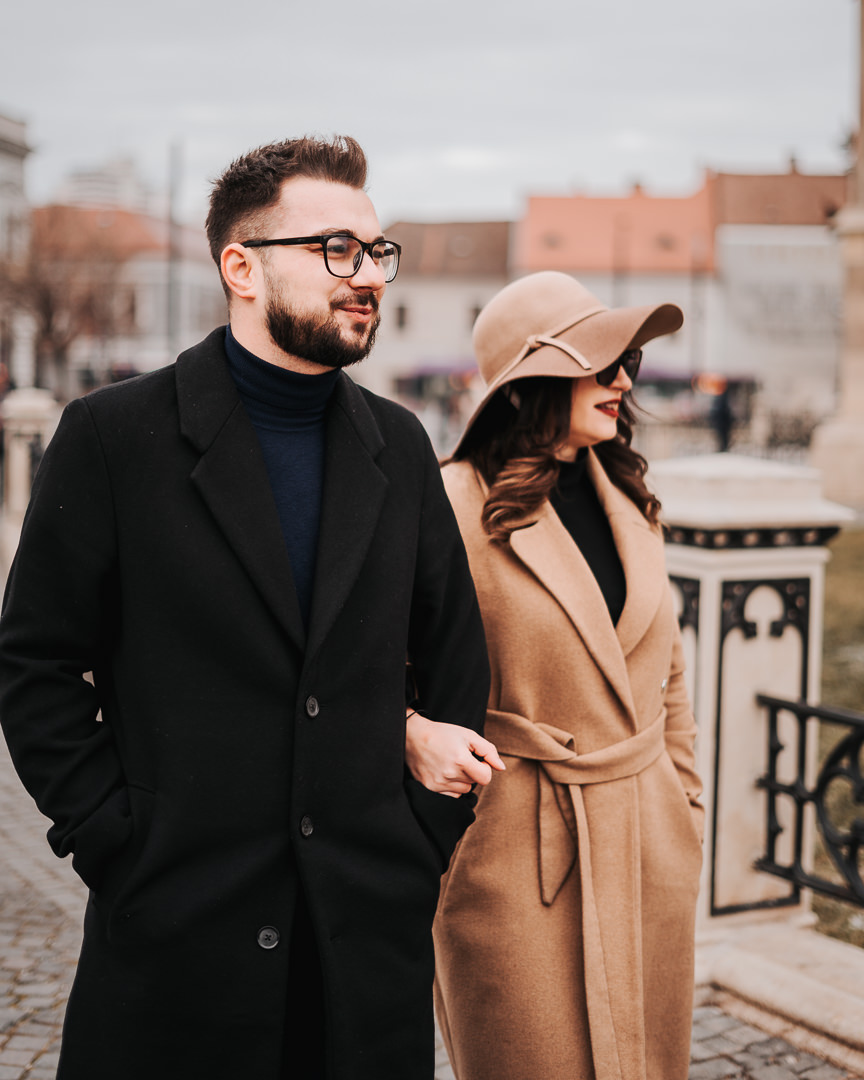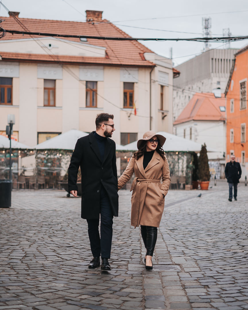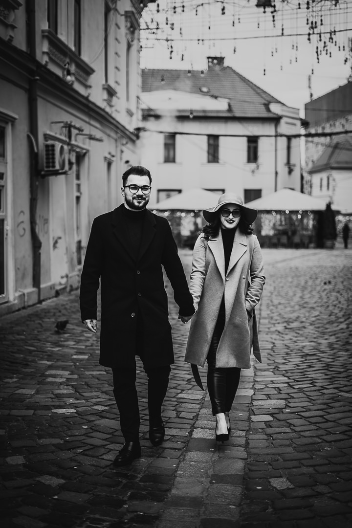 On a crisp winter day, the charming streets of Cluj-Napoca set the stage for Alexandra and Marian’s beautiful Save the Date photo session. Their love story, built over the years, deserved a celebration that felt personal – and that’s exactly what this session became.