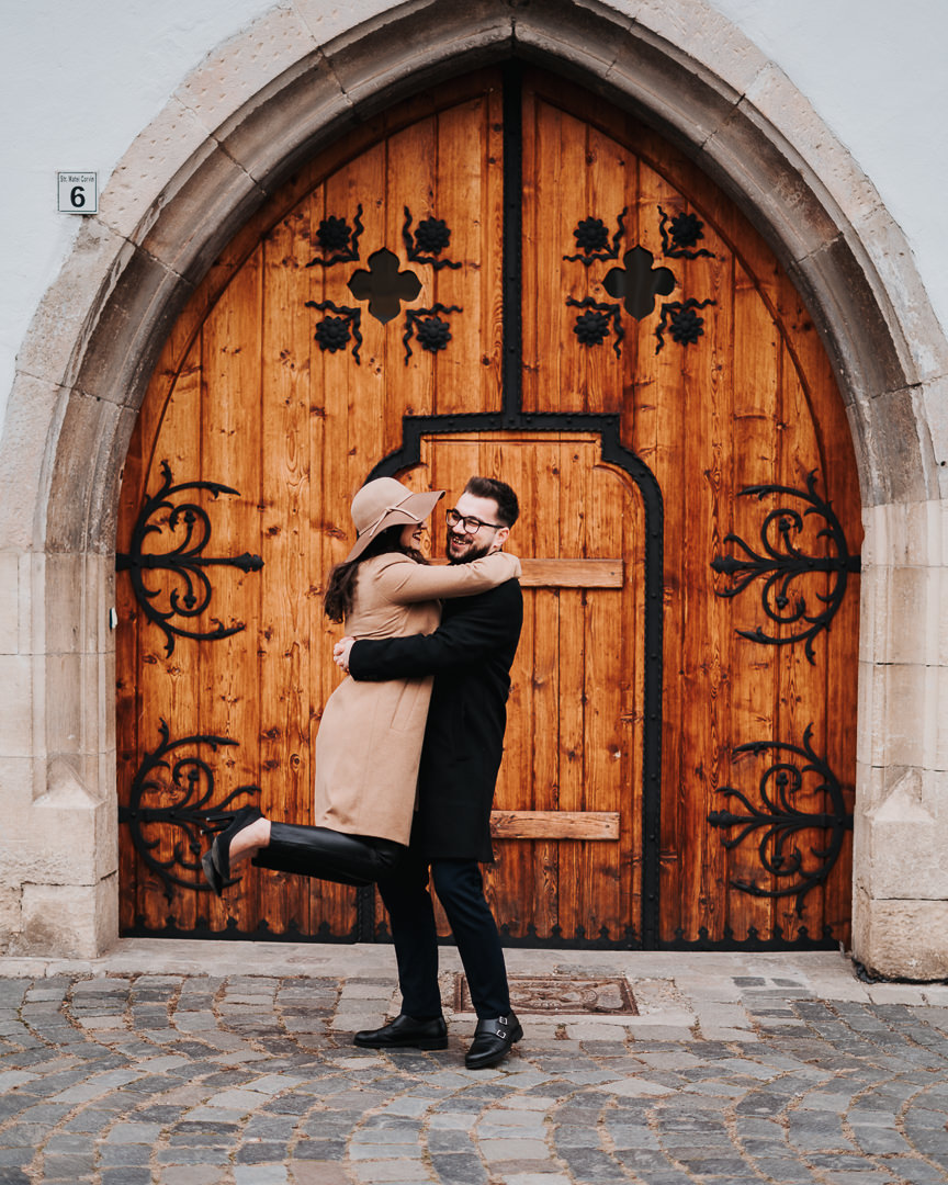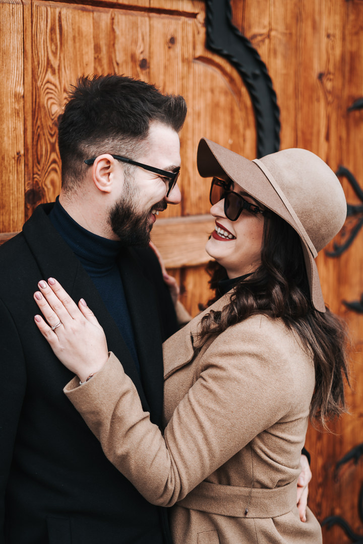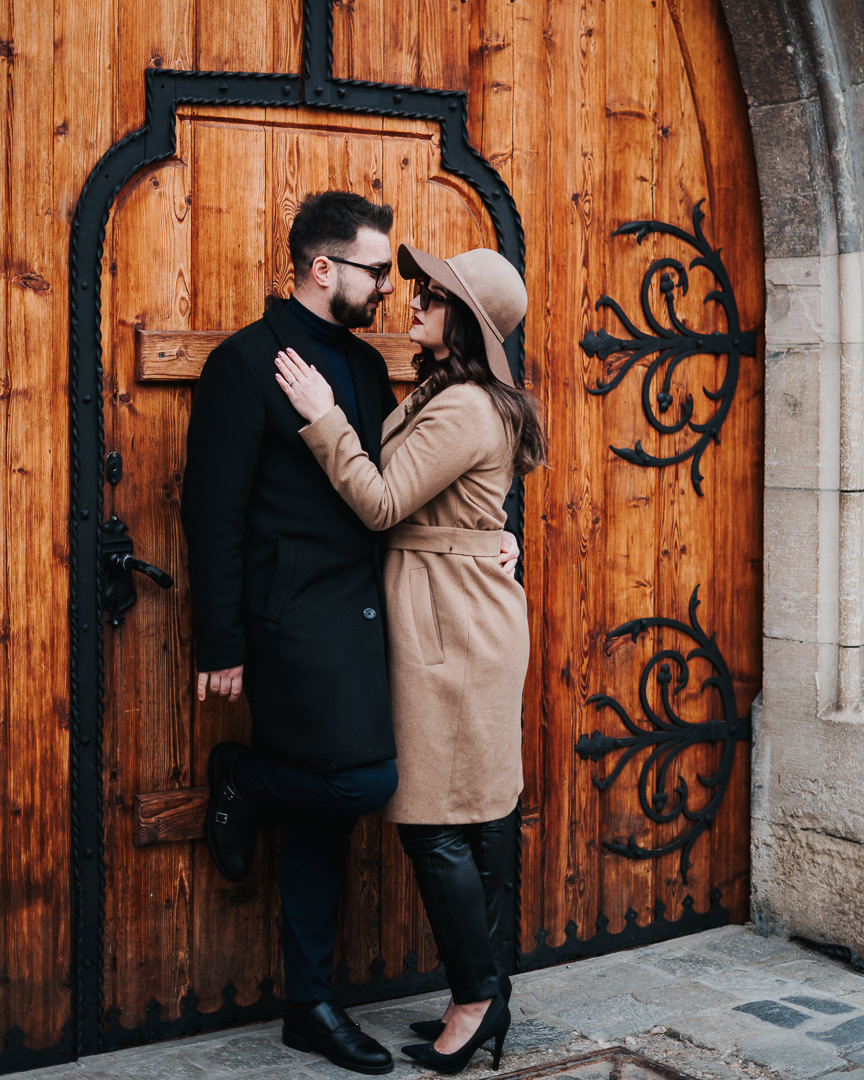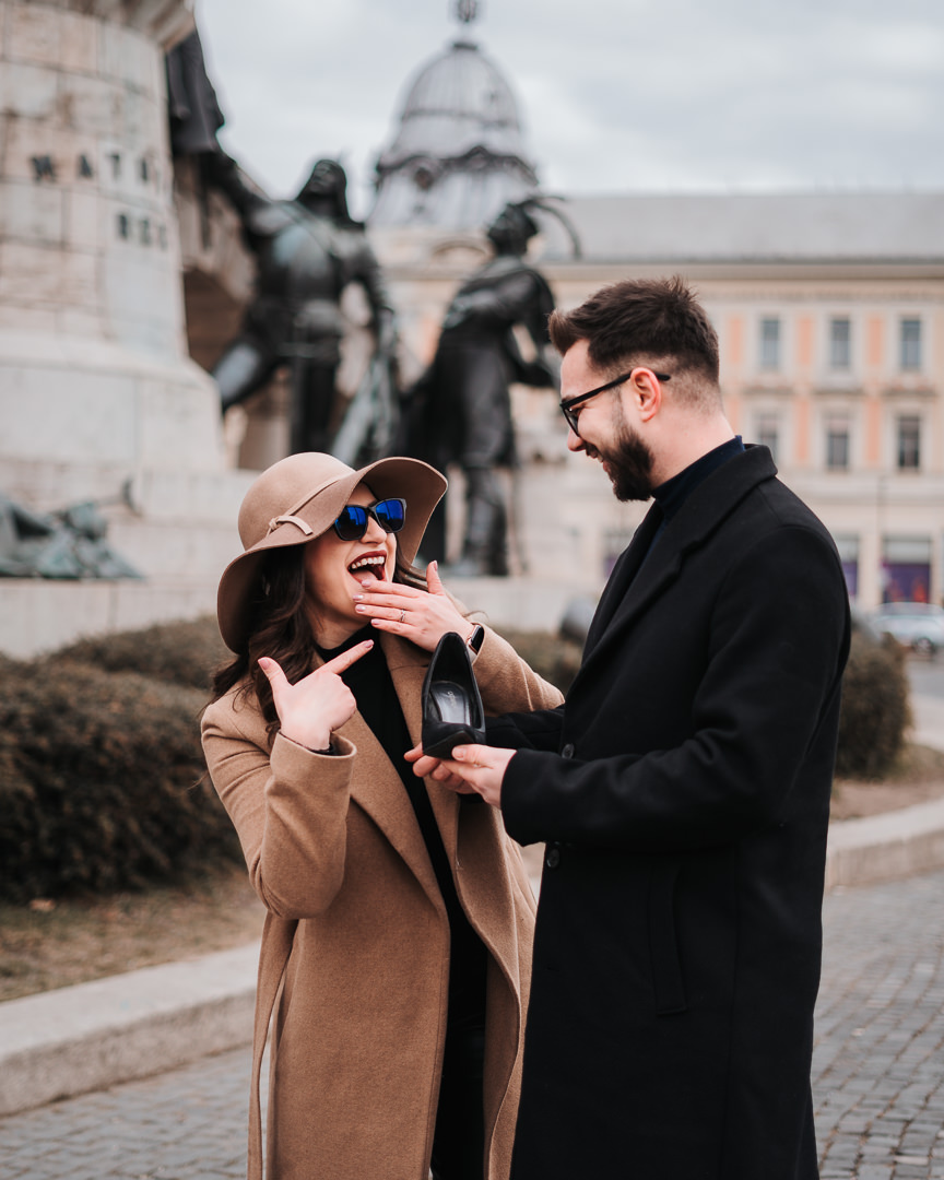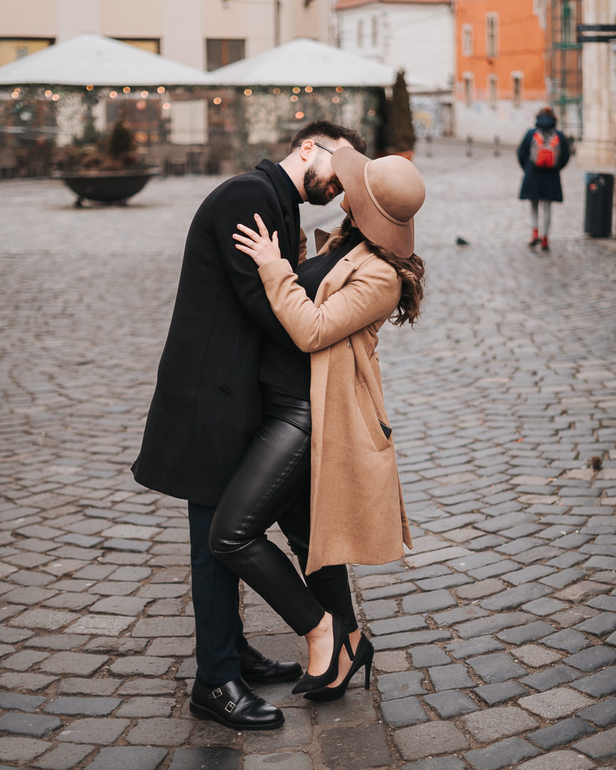 On a crisp winter day, the charming streets of Cluj-Napoca set the stage for Alexandra and Marian’s beautiful Save the Date photo session. Their love story, built over the years, deserved a celebration that felt personal – and that’s exactly what this session became.
